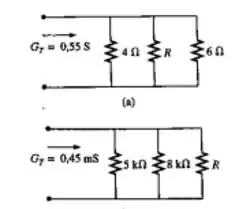 Determine a condutância e a resistência totais para o circuito mostrado abaixo.