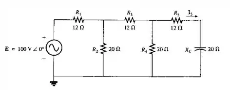 Determine a corrente para o circuito visto na Figura . Note o efeito de um elemento reativo no resultado dos cálculos.