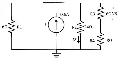 Onde, Vr2= Ir2 6 Ω = 4A6 Ω= 24V