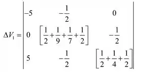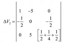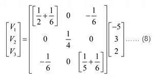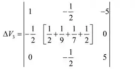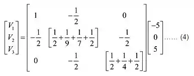 Consideraremos a seguinte formação de matriz e iremos encontrar os valores de tensão usando determinantes.