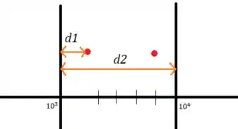 Se medirmos para o ponto da direita no computador, temos . Seguindo a escala, isso fica: