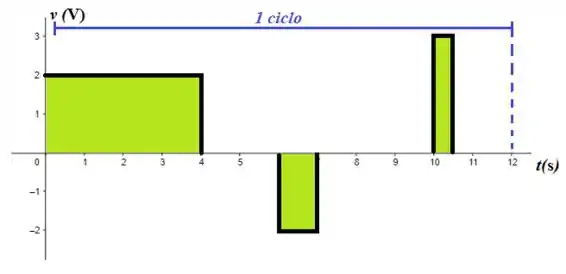Como as formas de ondas da figura são retangulares, isso nos vai facilitar pois sabemos que a área de um retângulo é o produto da base pela altura ;)