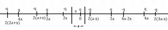 Primeiramente iremos colocar a origem no local da carga e, em seguida, examinando as primeiras cargas vemos que as cargas positivas estão situadas em:
