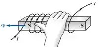 b) Já para a direção do fluxo não é necessário conta 😊, pois é descrita pela regra da mão direita, como mostra a figura abaixo: