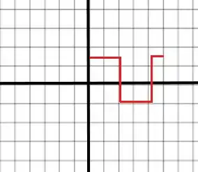 (d) Em nossa última alternativa esboçamos o sinal se passarmos de acoplamento DC para AC, verificamos que é possível visualizar a forma de onda descer, até se centrar em torno do eixo horizontal. Isto deve-se ao fato que o condensador presente do osciloscópio.