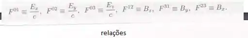 Lembre-se de que um quadrivetor covariante é obtido de outro contravariante mudando-se o sinal do componente de índice 0. O mesmo vale para os tensores: quando você ‘baixa um índice’ para torna-lo covariante, muda o sinal se o índice for zero. Calcule os invariantes tensoriais