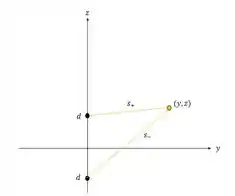Uma linha de carga uniforme é colocada em um fio reto infinito, a uma distância acima de um plano condutor aterrado. (Digamos que o fio corre paralelo ao eixo e diretamente acima dele e que o plano condutor é o plano .)