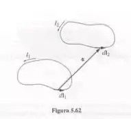 A magnetostática trata a 'corrente fonte' (a que estabelece o campo) e a corrente de prova' (a que sofre a força) tão assimetricamente que de forma alguma fica óbvio que a força magnética entre os dois circuitos de corrente é coerente com a terceira lei de Newton. Mostre, começando com a lei de Biot-Savart (5.32) e com a lei de força de Lorentz (5.16), que a força no circuito 2, devida ao circuito 1 (Figura 5.62), pode ser escrita como
