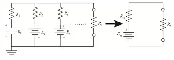 Através da aplicação do teorema de Millman, qualquer número de fontes de tensão paralelas pode ser reduzido a um.