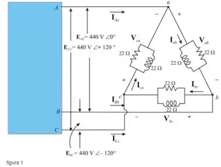 - Portanto, a corrente de fase da carga é .