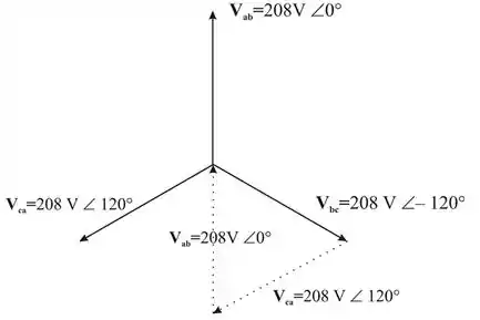Portanto, a tensão através da impedância de cada fase na forma de fasor é