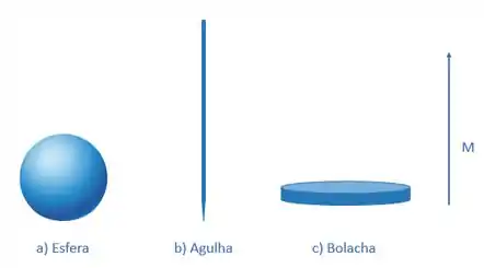 c) Faça o mesmo para uma cavidade fina em forma de bolacha, perpendicular a M.