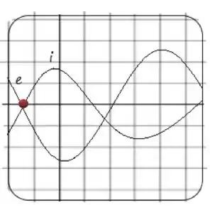Agora destacamos um ponto em especial (em vermelho), as duas funções começam no mesmo ponto sendo totalmente contrarias, quando isso ocorre afirmamos que a diferença de fase entre ambas é 180°