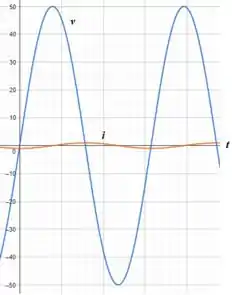 A tensão em uma reatância indutiva de é dada pelas expressões a seguir. Qual a expressão senoidal para a corrente? Esboce as formas de onda de e no mesmo gráfico.