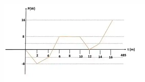 - Para o período a corrente volta a ser negativa, logo, a carga irá decrescer com uma inclinação de -4 (-4C/s) até o próximo período.