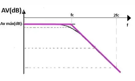 c) Para o filtro passa- baixa o gráfico de bode idealizado pode ser descrito como: