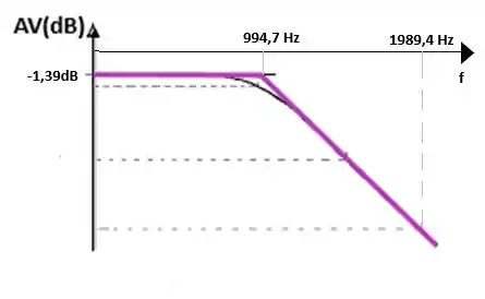 d) Trace a curva real, indicando a diferença em dB, entre a curva real e a curva de Bode para