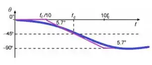 f) Trace a curva de fase (ângulo no qual está adiantada em relação a ) para a mesma faixa de frequência.