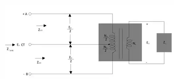 Para o transformador com derivação central visto na Figura 21.42 com Np = 100, Ns = 25, ZL = R0° = 5Ω0° e Ep = 100 V0°.
