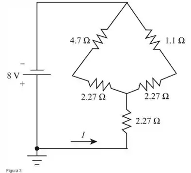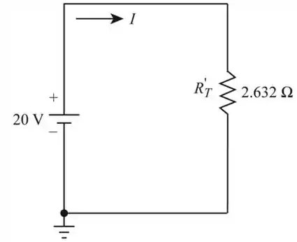 Vamos redesenhar a figura 1 para determinar a corrente. A rede modificada é mostrada a seguir