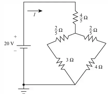 Vamos redesenhar a figura para determinar a resistência total. A rede modificada é mostrada a seguir