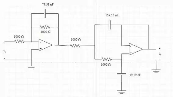 a) Usando resistores de 1 kV e amp op ideais, projete o filtro Butterworth passa-baixas especificado no Problema 15.34. O ganho é unitário na faixa de passagem.