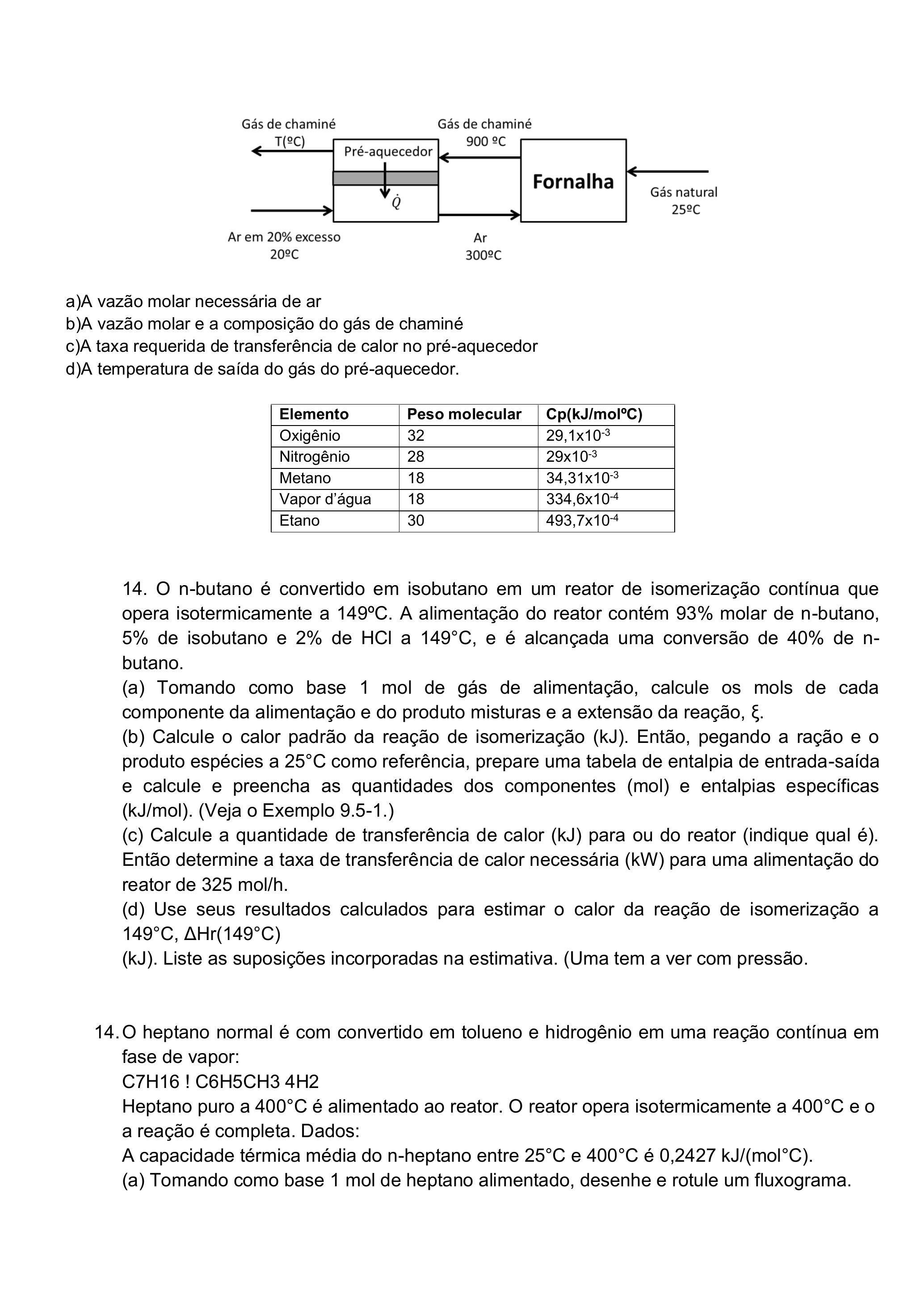 Para o calor de vaporização, o enunciado pede para usar as correlações de Chen e de Riedel. Ambas fornecem