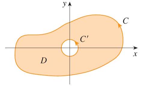 \int_{C} \mathbf{F} \cdot d \mathbf{r}=\int_{C^{\prime}} \mathbf{F} \cdot d \mathbf{r}