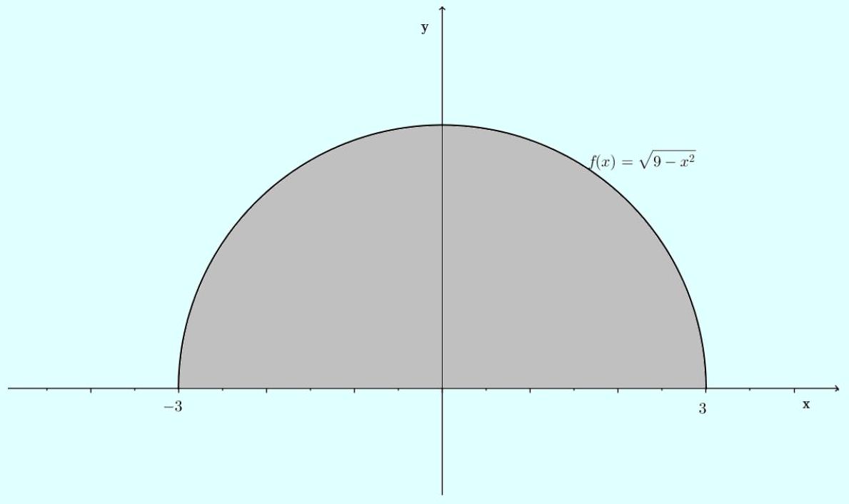 Área =pi r^22=pi cdot 3^22=9 pi2 ua corresponde ao semicírculo de raio igual a 3 , conforme indica a figura abaixo: