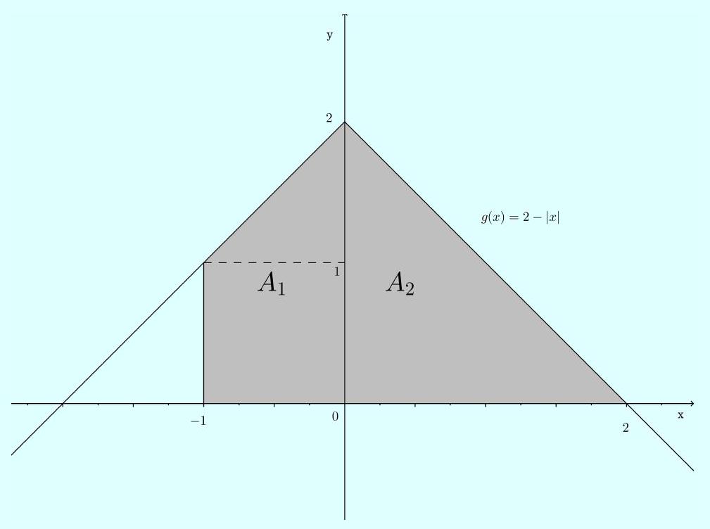 Área =A1+A2=(2+1) cdot 12+2 cdot 22=72 ua é da seguinte forma