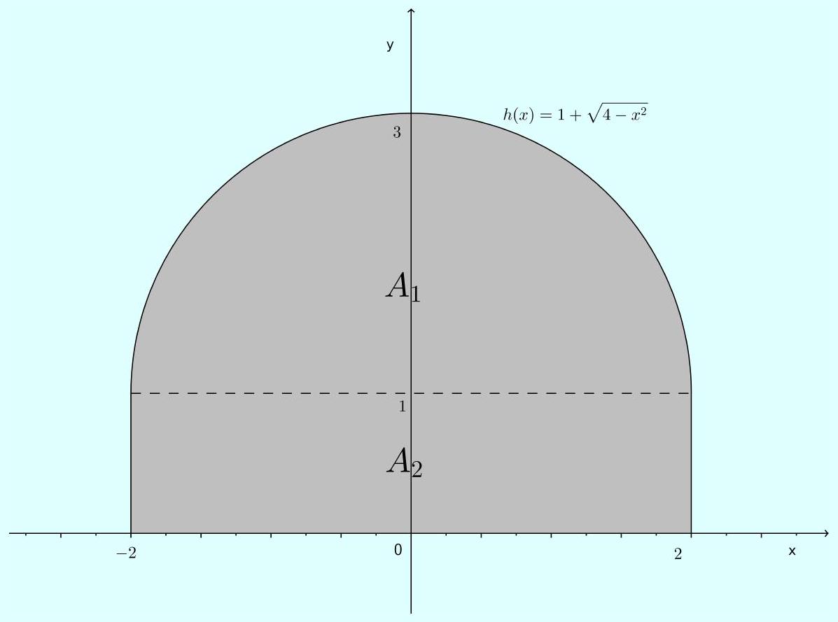 Área =A1+A2=pi cdot 2^22+4 cdot 1=2 pi+4 approx 10,283 ua e