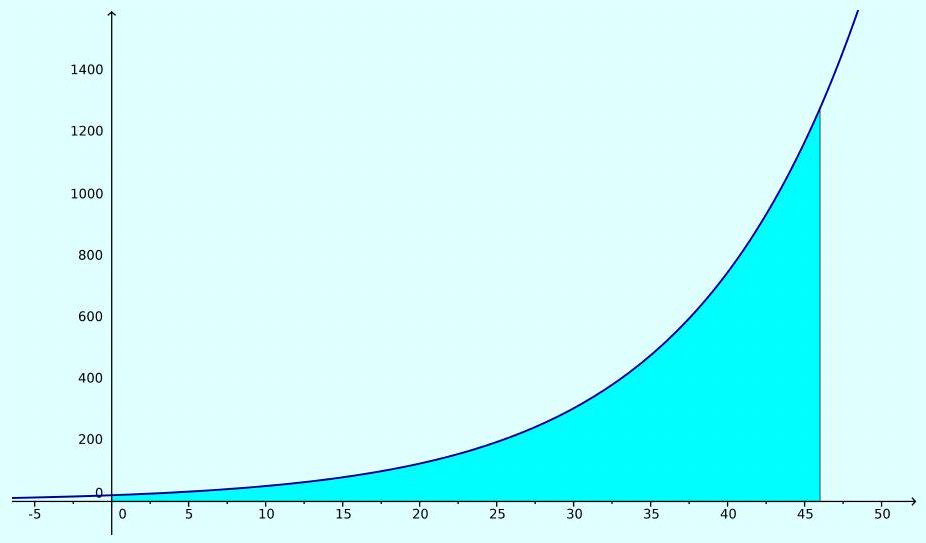 20,3 integral0^46 e^0,09 t d t=225,56 e^0,09 t|0 ^46 approx 13940 e