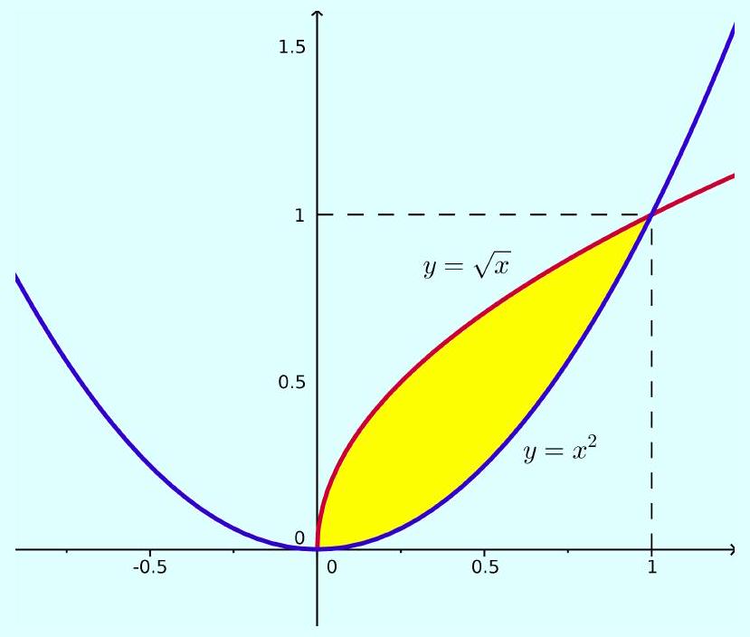 A=integral0^1(raizx-x^2) d x=(2 x^32-x^33)|0 ^1=13 ua e