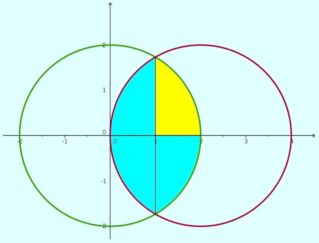 no primeiro quadrante (em amarelo) e multiplicamos por quatro. Integrando em relação a