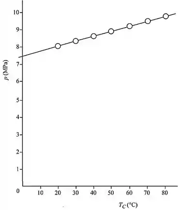 O cilindro tem um volume de e contém oxigênio a uma pressão absoluta de e temperatura de . Desenhe a variação de pressão no cilindro (eixo vertical) contra a temperatura para .... T.... . Informe os valores em incrementos de .