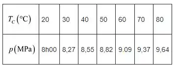 Resumindo os valores calculados de pressão absoluta para várias temperaturas como na tabela a seguir