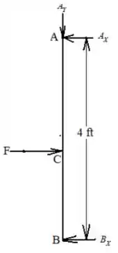 Aqui, a reação em B é B x . Substitua 1248 ( h - 2 ) l b f para F e 2 + 26.66 20 × ( h - 2 ) para A C .