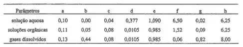 Com para soluto e solvente apolares. No caso de o soluto e/ou solvente serem polares, fazer: