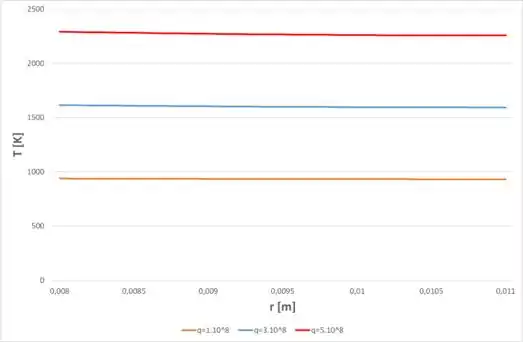 Pra isso, nós vamos encontrar na superfície externa do combustível (em ) usando as resistências térmicas por unidade de comprimento: