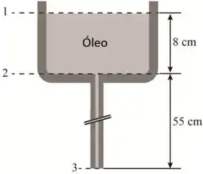 A figura aqui embaixo mostra o reservatório que o óleo está fluindo pelo tubo