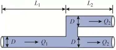 A descarga através da primeira porção do tubo é igual a soma de descargas dos dois tubos paralelos