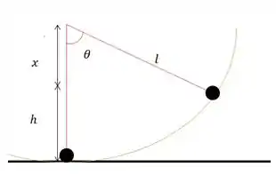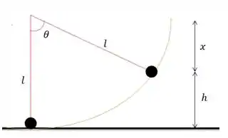 Como consideramos a altura medida a partir do ponto mais baixo (com nesse ponto), então a altura que o pêndulo atinge é . Agora desenvolvendo a equação: