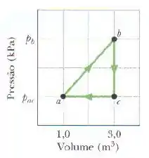 Uma amostra de um gás ideal é submetida ao processo cíclico abca mostrado na figura. A escala do eixo vertical é definida por e . No ponto , . (a) Quantos mols do gás estão presentes na amostra? Qual é (b) a temperatura do gás no ponto , (c) a temperatura do gás no ponto e (d) a energia adicionada ao gás na forma de calor ao ser completado o ciclo?