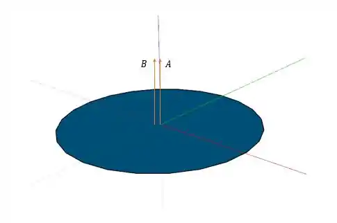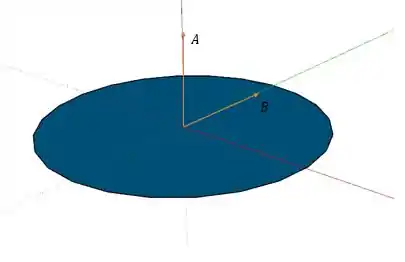 O vetor normal a área do círculo aponta exclusivamente para o eixo (vetor A) e como queremos o módulo vamos sempre supor que ele está no mesmo sentido (vertical pelo menos) que o do campo magnético, portanto o produto escalar do fluxo magnético será de: