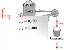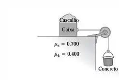 Ao remover o saco de Cascalho da caixa, temos que a força necessária para segurar a Caixa cai para , desta forma ela deixa seu estado de repouso.