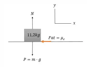 b) Bom, agora vamos remover a força, . Então, agora a única força horizontal na caixa é a força de atrito cinético .