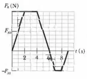 Um carro de brinquedo de pode se mover ao longo de um eixo ; a Fig. 9-50 mostra a componente da força que age sobre o carro, que parte do repouso no instante . A escala do eixo é definida por . Em termos dos vetores unitários, determine (a) em ; (b) em ; (c) em .