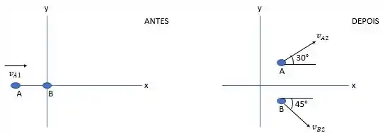 a) Sabendo que o momento se conserva para cada eixo separadamente, podemos escrever a lei de conservação do momento linear para cada eixo. Ademais, nossos termos são: