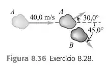 Note que os ângulos foram decompostos no eixo , que é o eixo que estamos tratando. Simplificando as massas (porque são iguais) e sabendo que o asteroide está em repouso inicialmente, então: