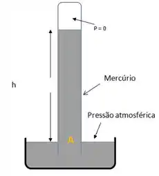 Logo, tomando como referência o ponto A e um ponto localizado na superfície do mercúrio em contato com a atmosfera, temos:
